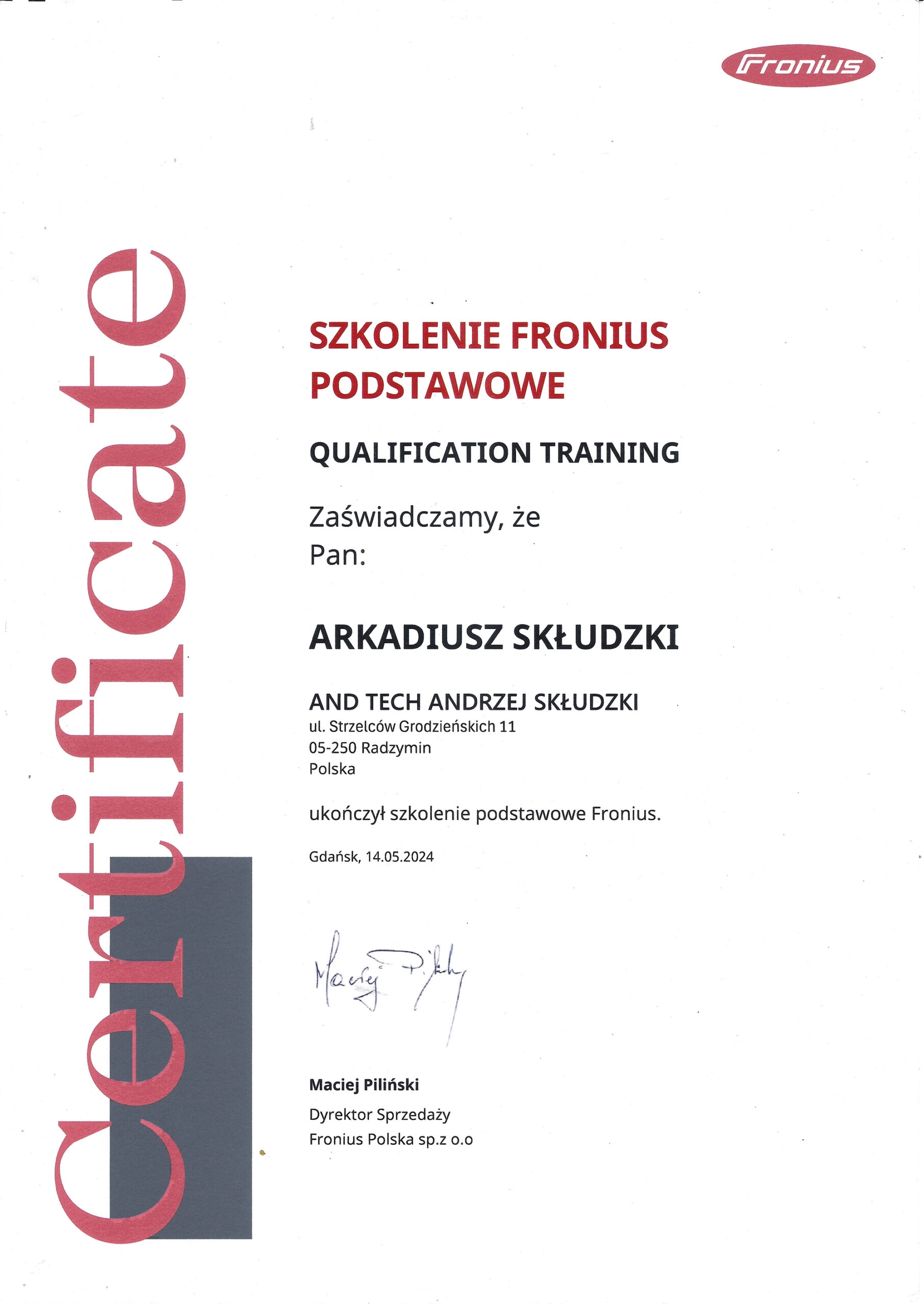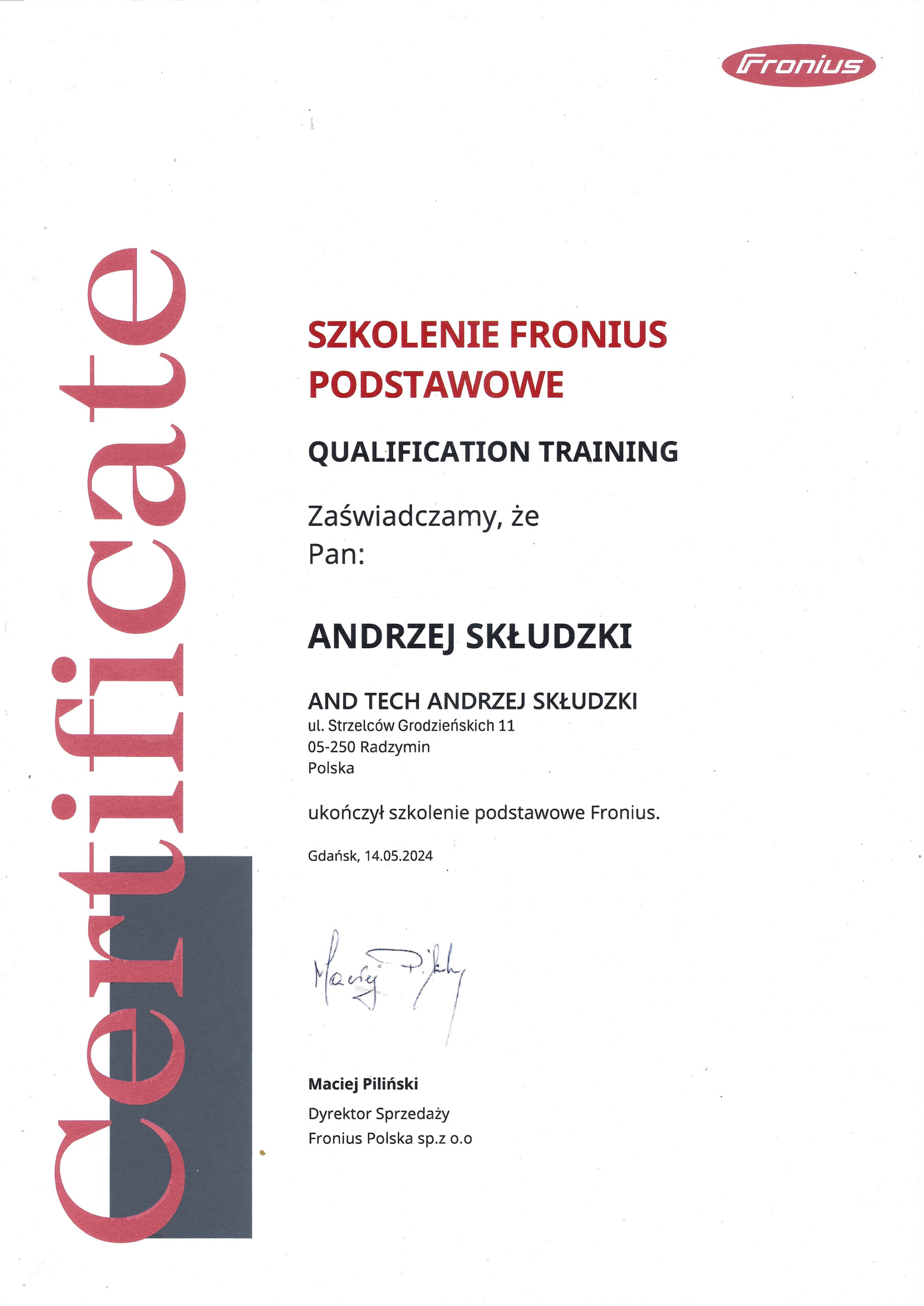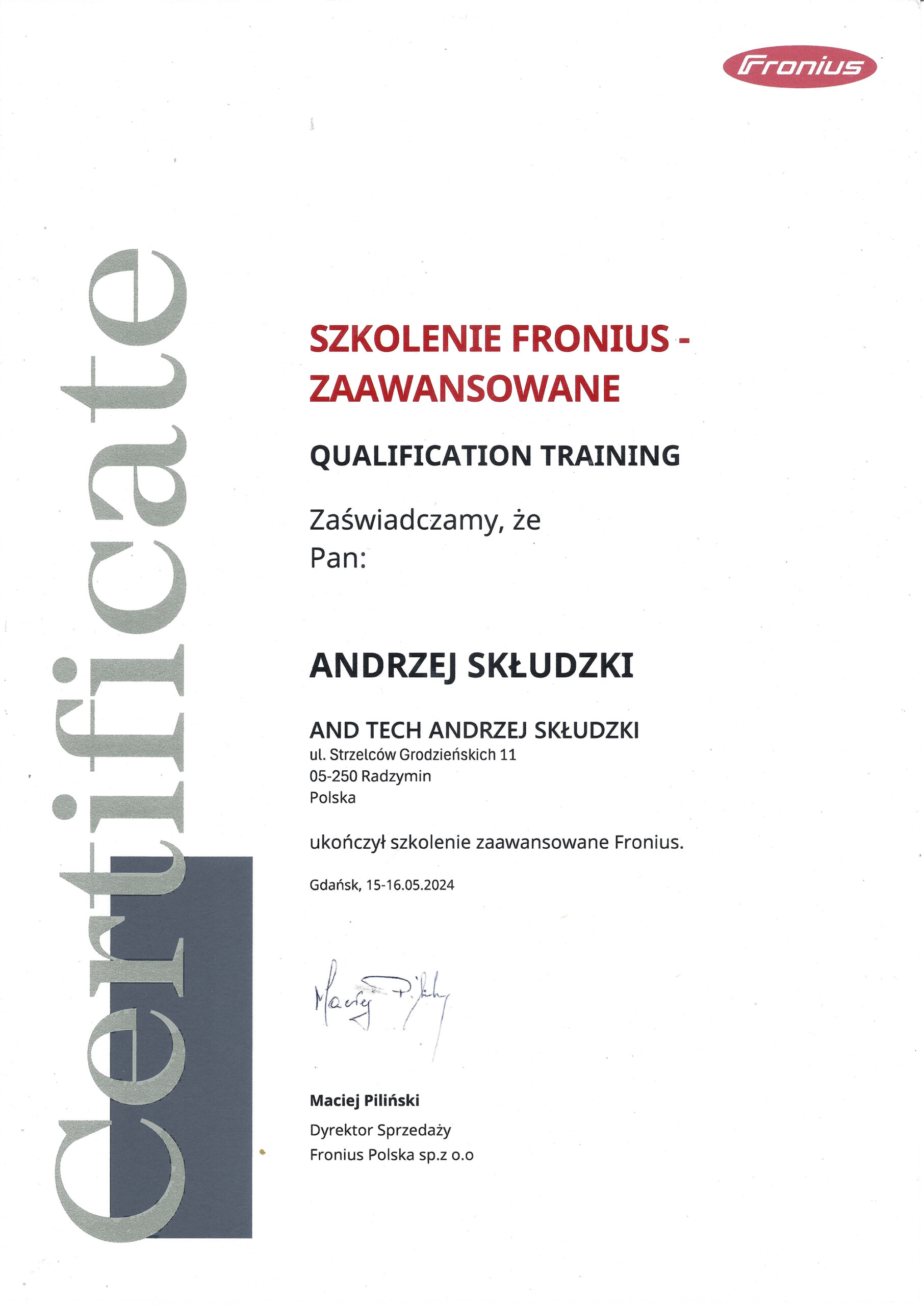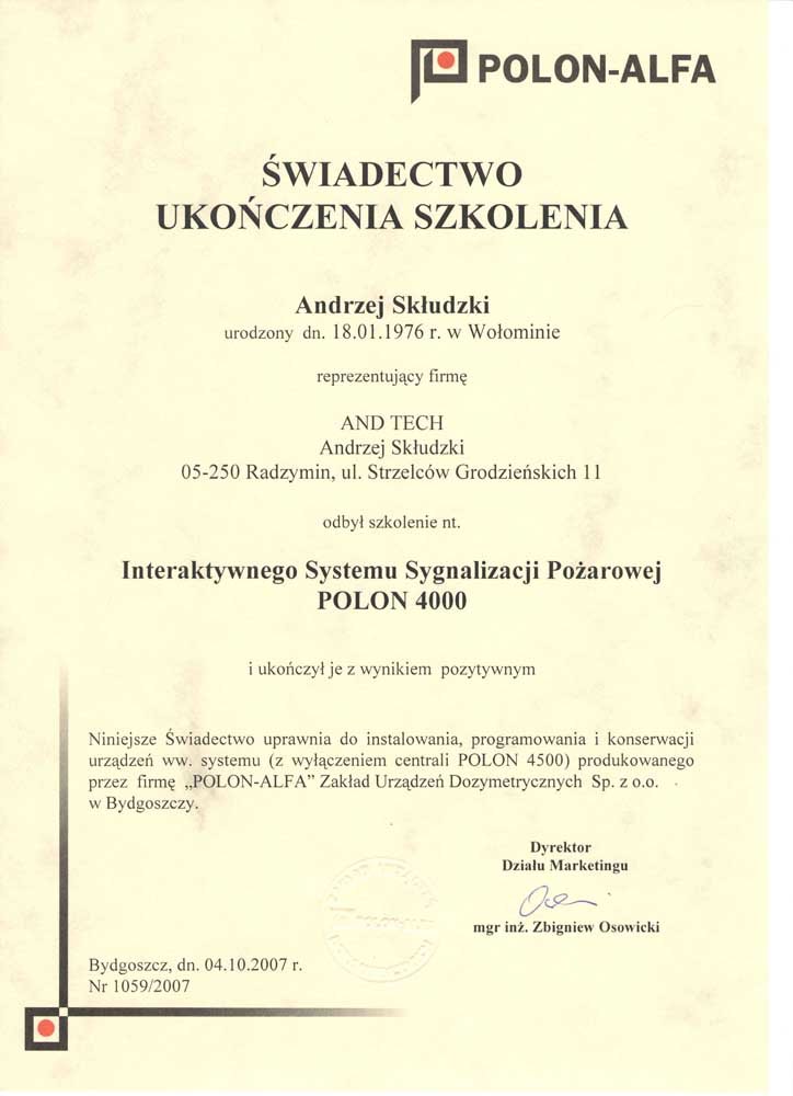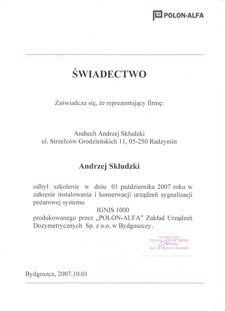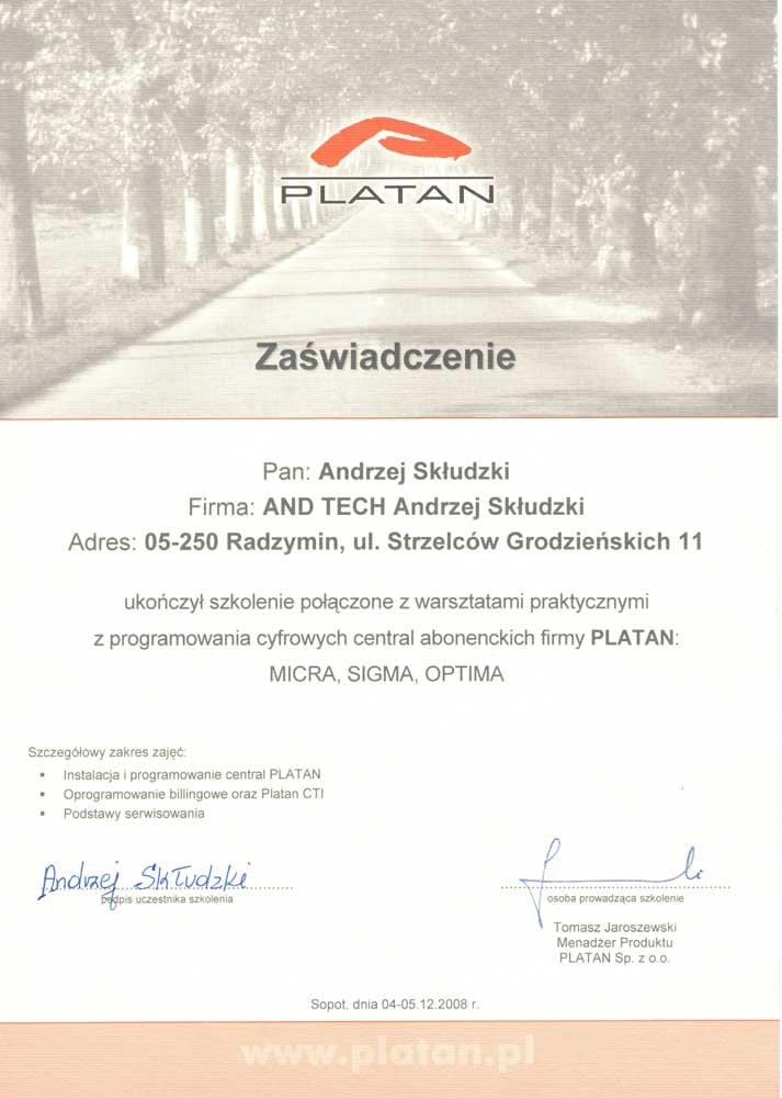 AndTech to firma ciesząca się pełnym zaufaniem. Podnosimy jakość naszych usług poprzez regularne szkolenia z zakresu montażu i obsługi najnowszych urządzeń dostępnych na rynku. Poniższe certyfikaty potwierdzają oferowaną przez nas gwarancję jakości.