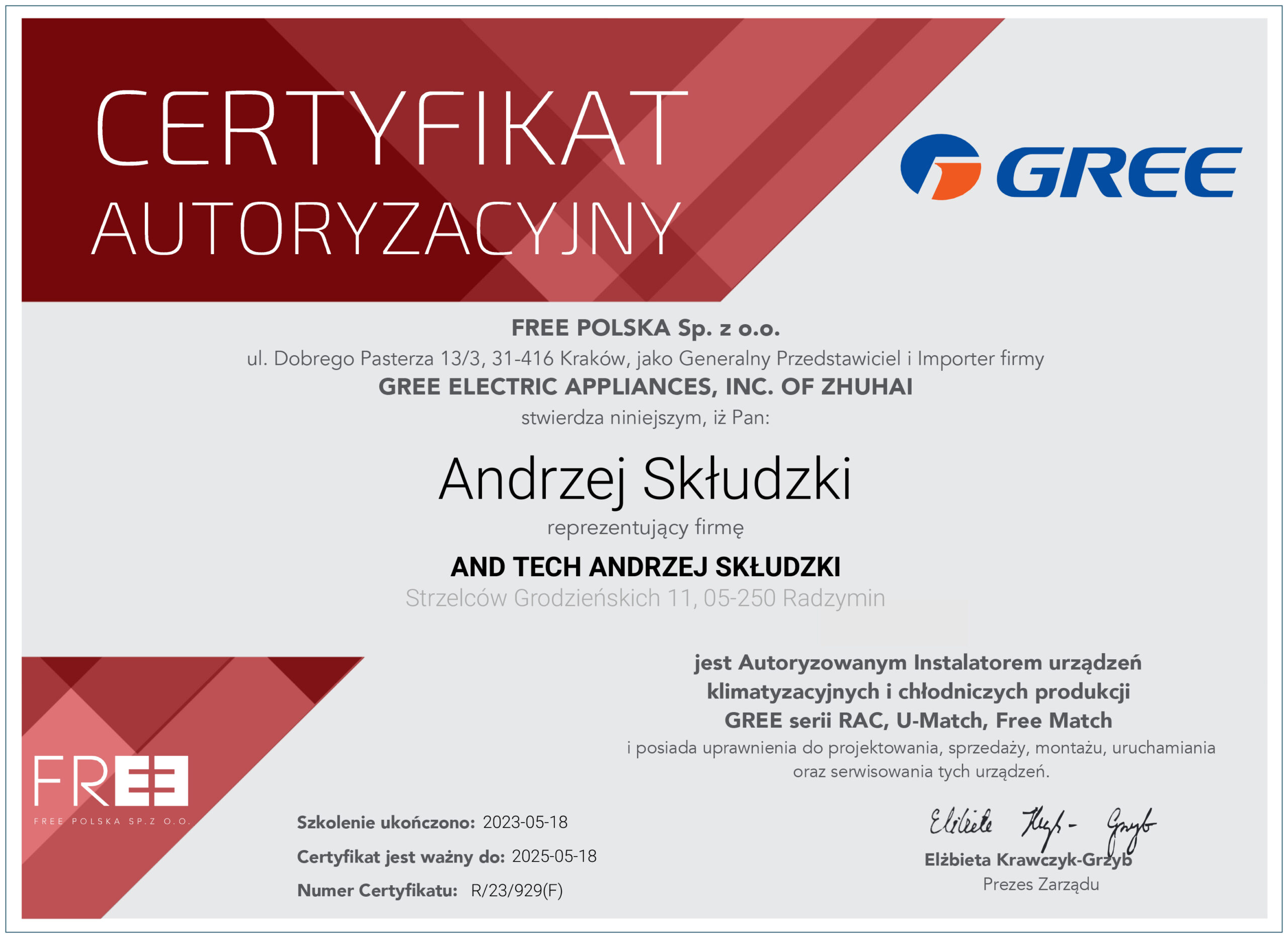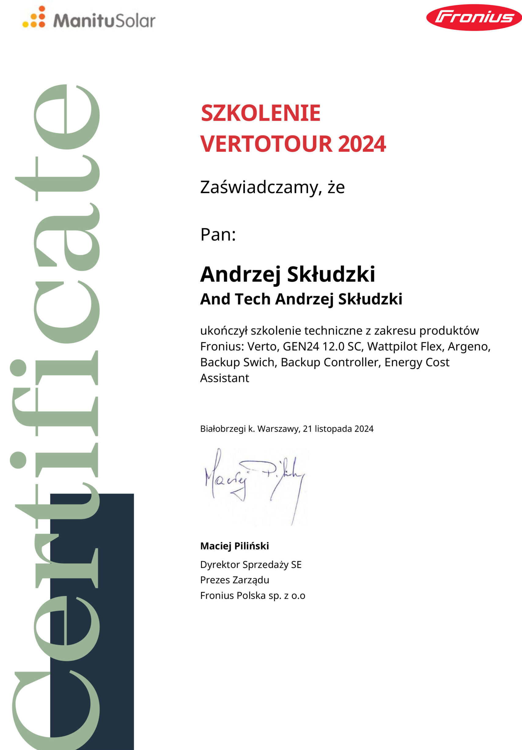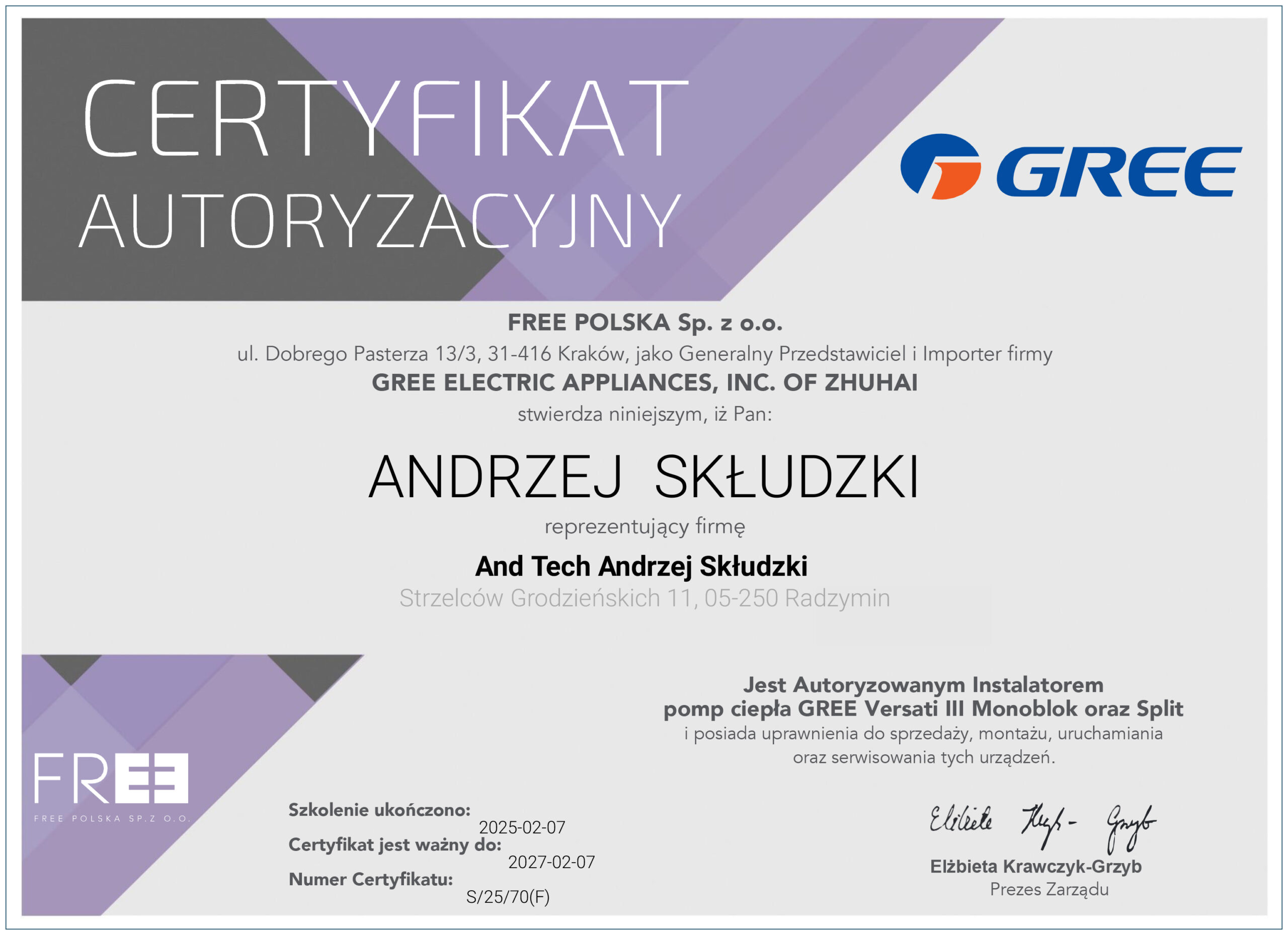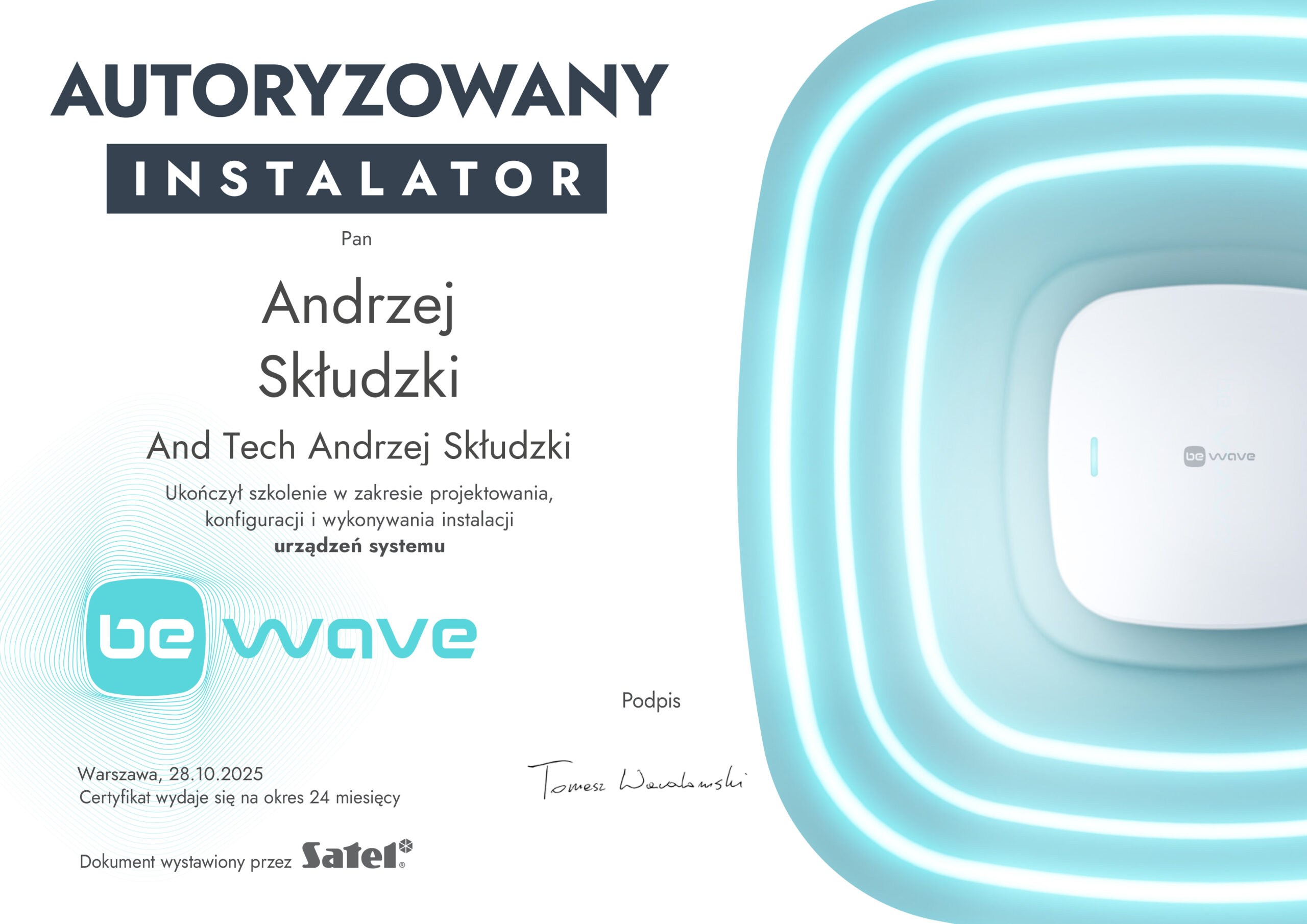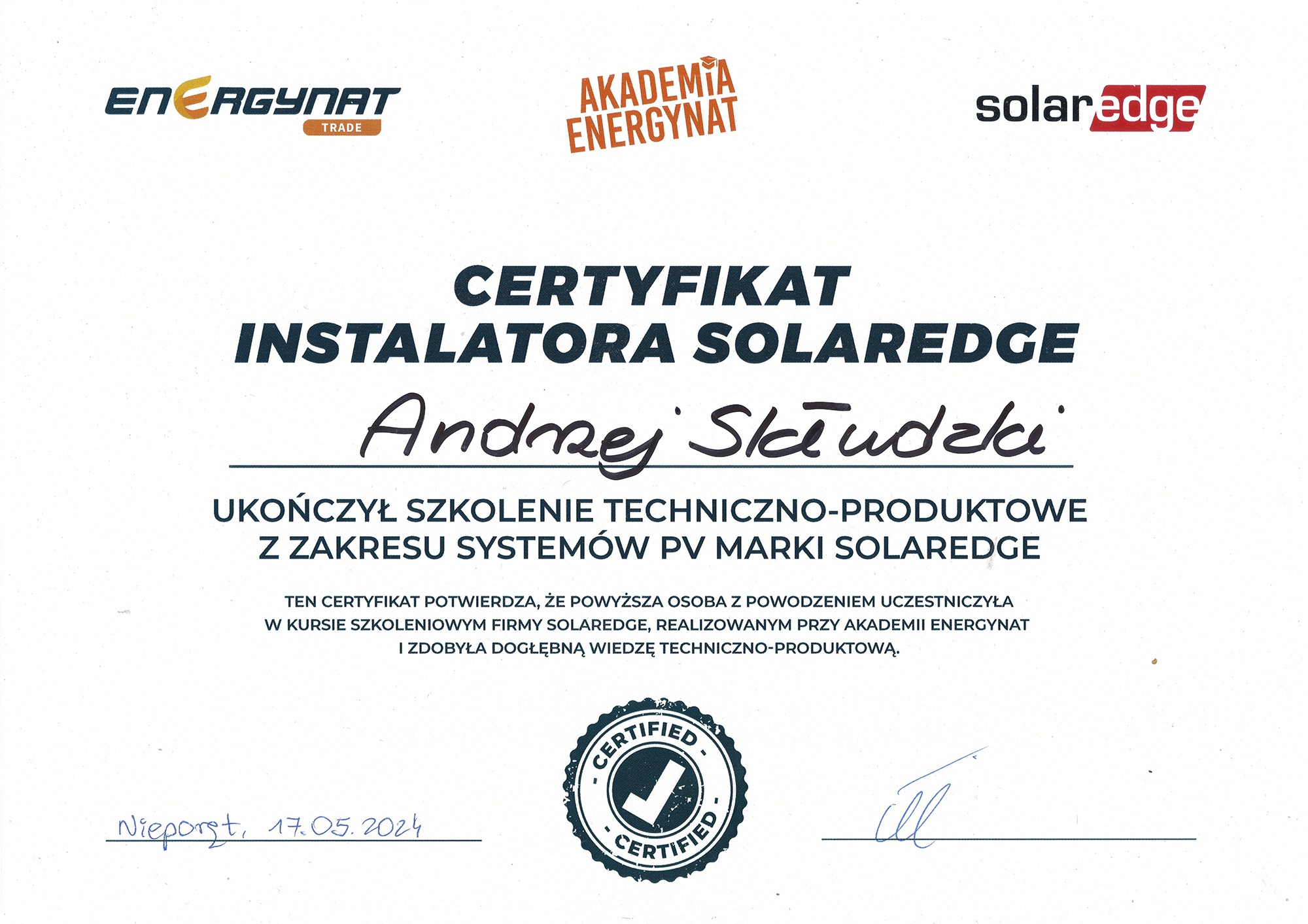AndTech to firma ciesząca się pełnym zaufaniem. Podnosimy jakość naszych usług poprzez regularne szkolenia z zakresu montażu i obsługi najnowszych urządzeń dostępnych na rynku. Poniższe certyfikaty potwierdzają oferowaną przez nas gwarancję jakości.