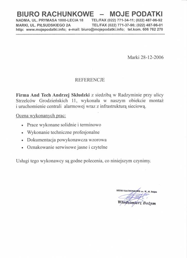 Doświadczenia w dotychczasowej współpracy pozwalają nam na rekomendowanie firmy AndTech jako profesjonalnego, odpowiedniego partnera.
